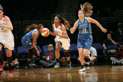 With a seven point lead headed into the third quarter, Washington needed much more ammunition in order to close out the contest against a sharpshooting Indiana team. Forcing the visitors to six turnovers in the third quarter alone, offense evidently started to come alive again as the team scored eight fast break points. Halfway through the final quarter, things slightly took a turn for the Mystics as Indiana began to crawl back from the 17 point deficit. Momentum began to sway as the Fever's Victaria Saxton made several defensive plays, along with a shot from behind the arc to pull the Fever within a point, 92-91. With the sellout crowd on the edge of their seats, Washington desperately struggled to put the ball into the net. However, their efforts never wavered on defense as the team took home a win.